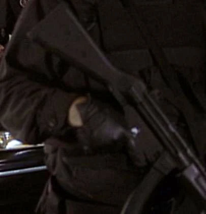 "11:00pm-12:00am" | CTU troops overseeing Syed Ali's transport out of CTU carried MP5s which they pointed once Ali was shot. |