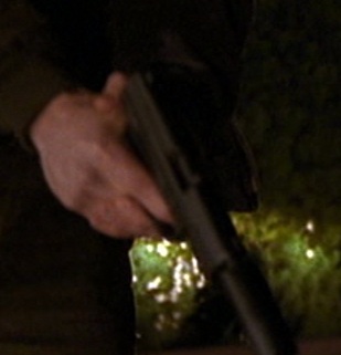 "1:00am-2:00am" | At the end of the Studio City gunfight, as Jack was fleeing into his car, one of the hitmen fired at his car with a Mossberg 500A Mariner with extended magazine tube and pistol grip. |