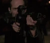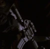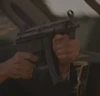 A bald terrorist who was part of Beresch's C-team had an Uzi as his weapon. He held the gun just before CTU attacked the terminal, but his apparent stunt double Dennis Keiffer carried an MP5K. |