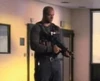 Three of the terrorists who guarded the hostages were armed with Uzis: Brian Ruppert's character, a bald terrorist wearing a C4 vest (pictured), and a long haired terrorist with a t-shirt and explosive vest. |